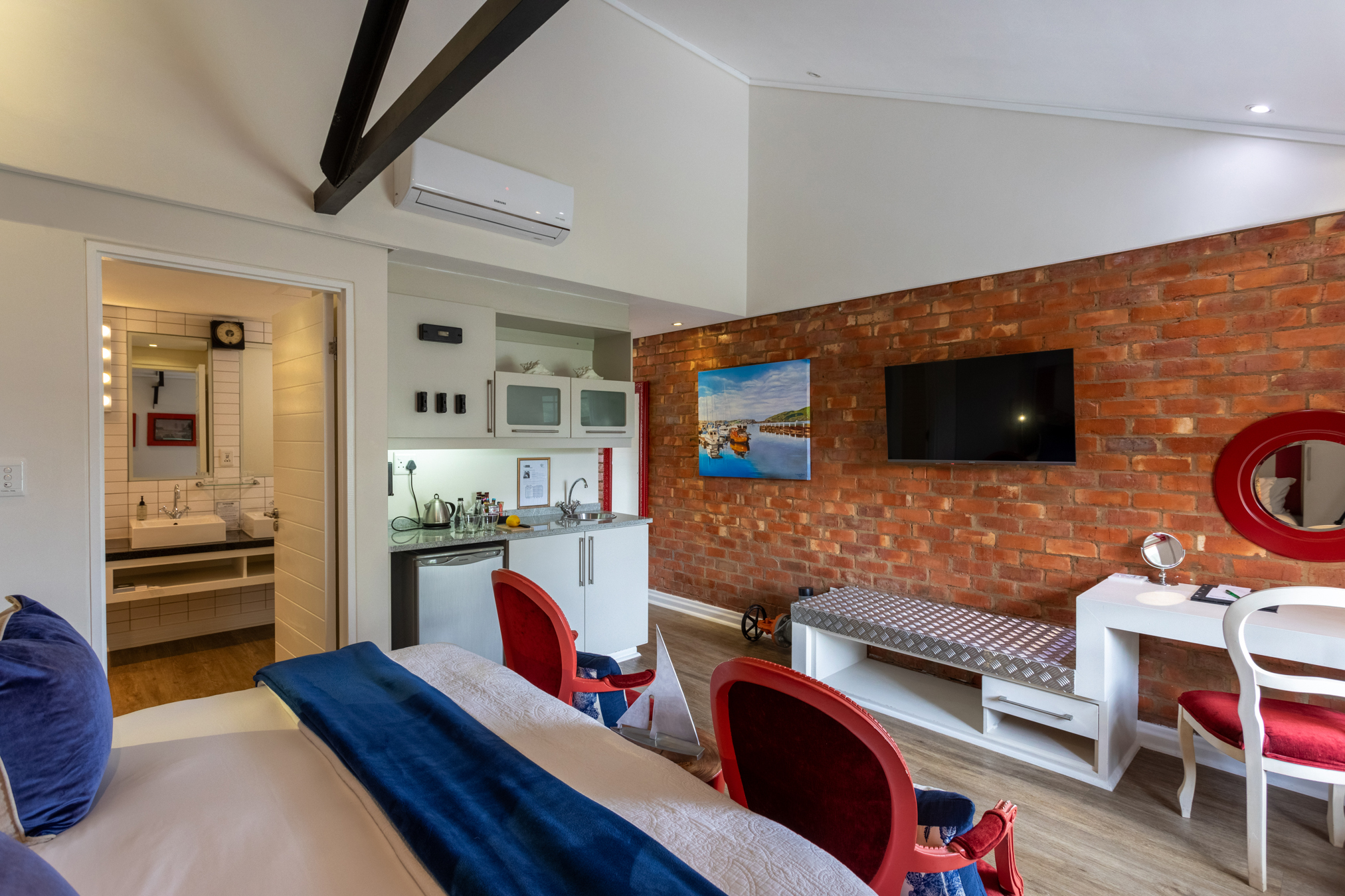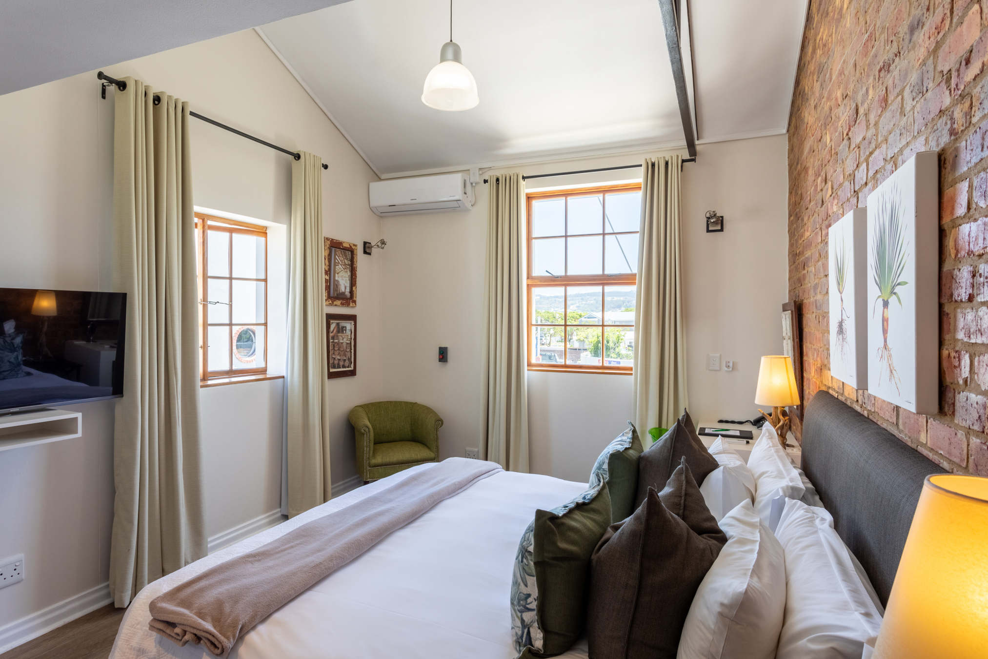 Original industrial features including exposed brickwork and polished concrete floors. Each room celebrates the building's heritage while providing modern comfort.